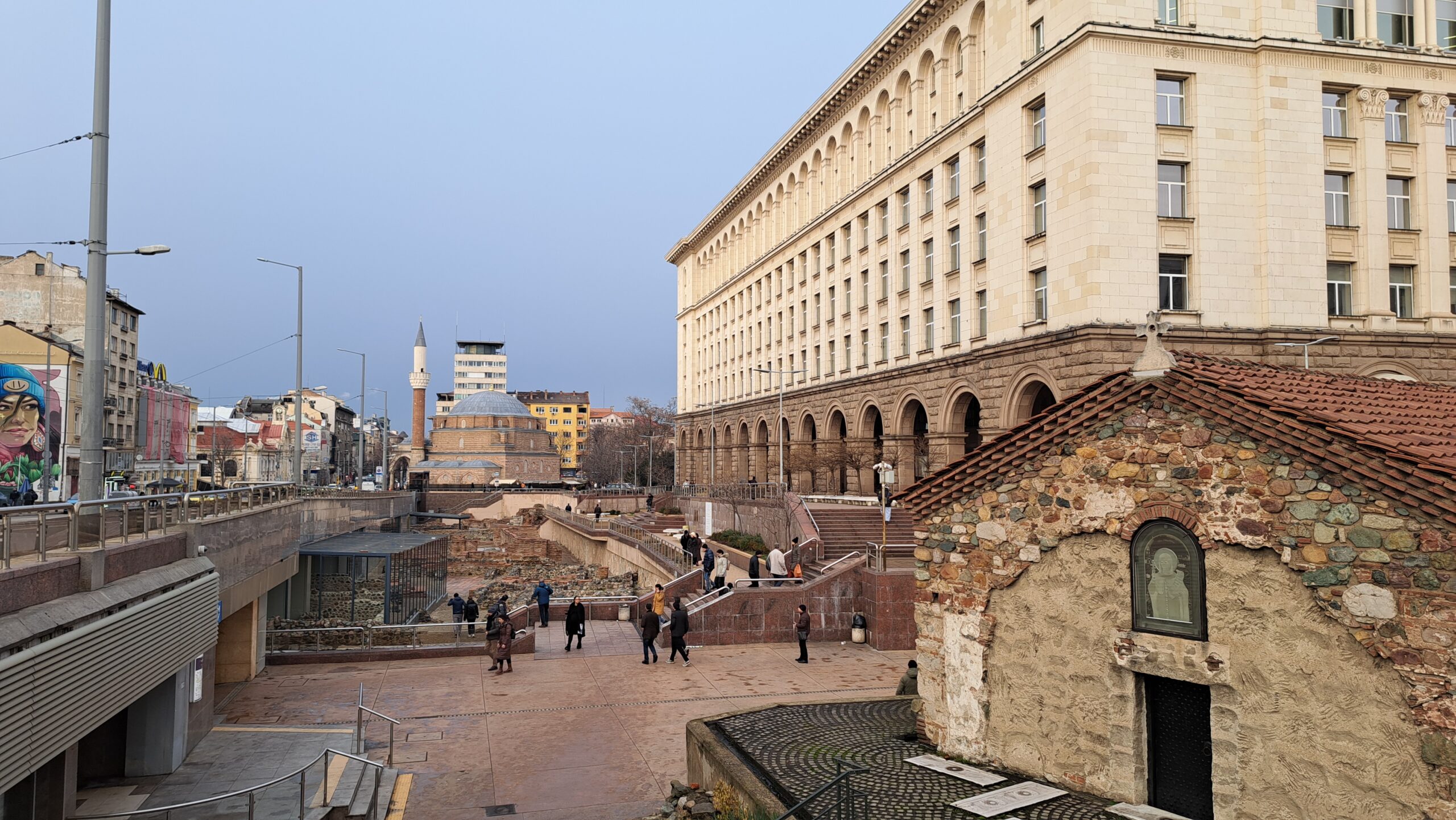V těsné blízkosti římských lázní se nachází také největší bulharská mešita a stará tržnice, ve které nyní sídlí Kaufland. Po rušné turistické ulici Vitosha Boulevard můžete dojít, kolem četných barů a restaurací, ke kongresovému centru s přilehlým parkem – místem vhodným k relaxaci a odpočinku.