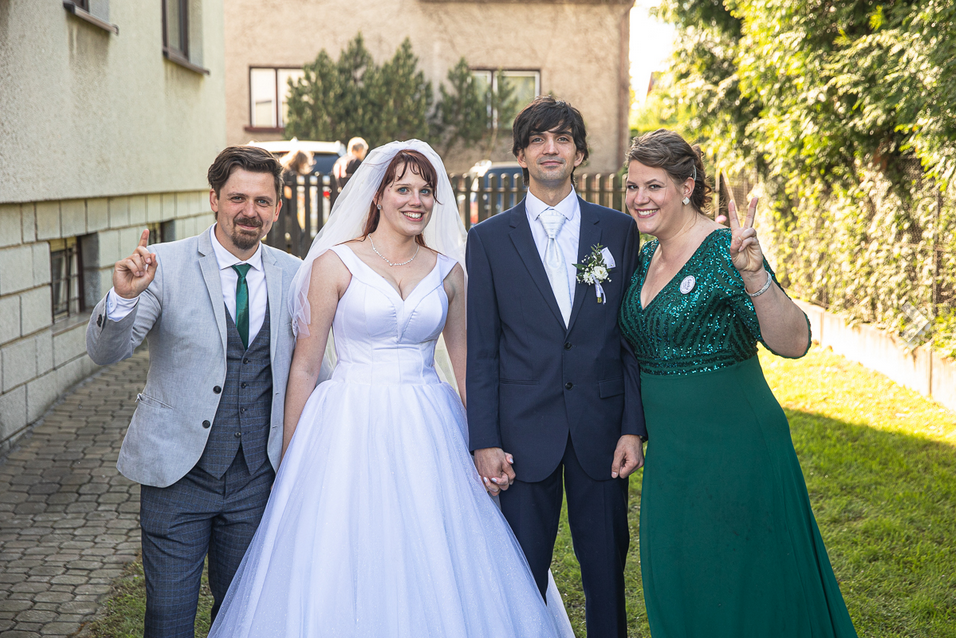 No a tehdy začala naplno naše svatební tour 2021! Nejdříve jsem, coby svědkyně, aktivně organizovala loučení se svobodou své kamarádce Míše, následně se zapojila do další rozlučky a nakonec jsme 21. května s Markem nasadili slavností róby a vyrazili do Plzně, abychom novomanželům Kafkovým popřáli do společných let jen to nejlepší. Po zběsilém přejezdu z Plzně do Studénky a po chabých 4 hodinách spánku jsme 22.5. na sebe oblékli jiné slavnostní róby, vyndali jiné svatební dary (hurá! ručně malovaná hra byla konečně hotová!) a šli popřát jen a jen to nejlepší našim dalším milým přátelům, novomanželům Bobakovým.KafkoviBobakoviObě svatby byly krásné! Každá úplně jinačí, s jinou energií, jinými lidmi, jiným konceptem i počasím. Obě nevěsty ale byly nádherné, krásně nervózní, zamilované. Oběma jsem pomáhala zapnout svatební šaty a u obou svateb jsem bulela jak štěně. Oběma ženichům to v krásných oblecích seklo, že jsme s Markem jenom valili bulvy. A na obou svatbách byl skvělý dort i pohoštění.