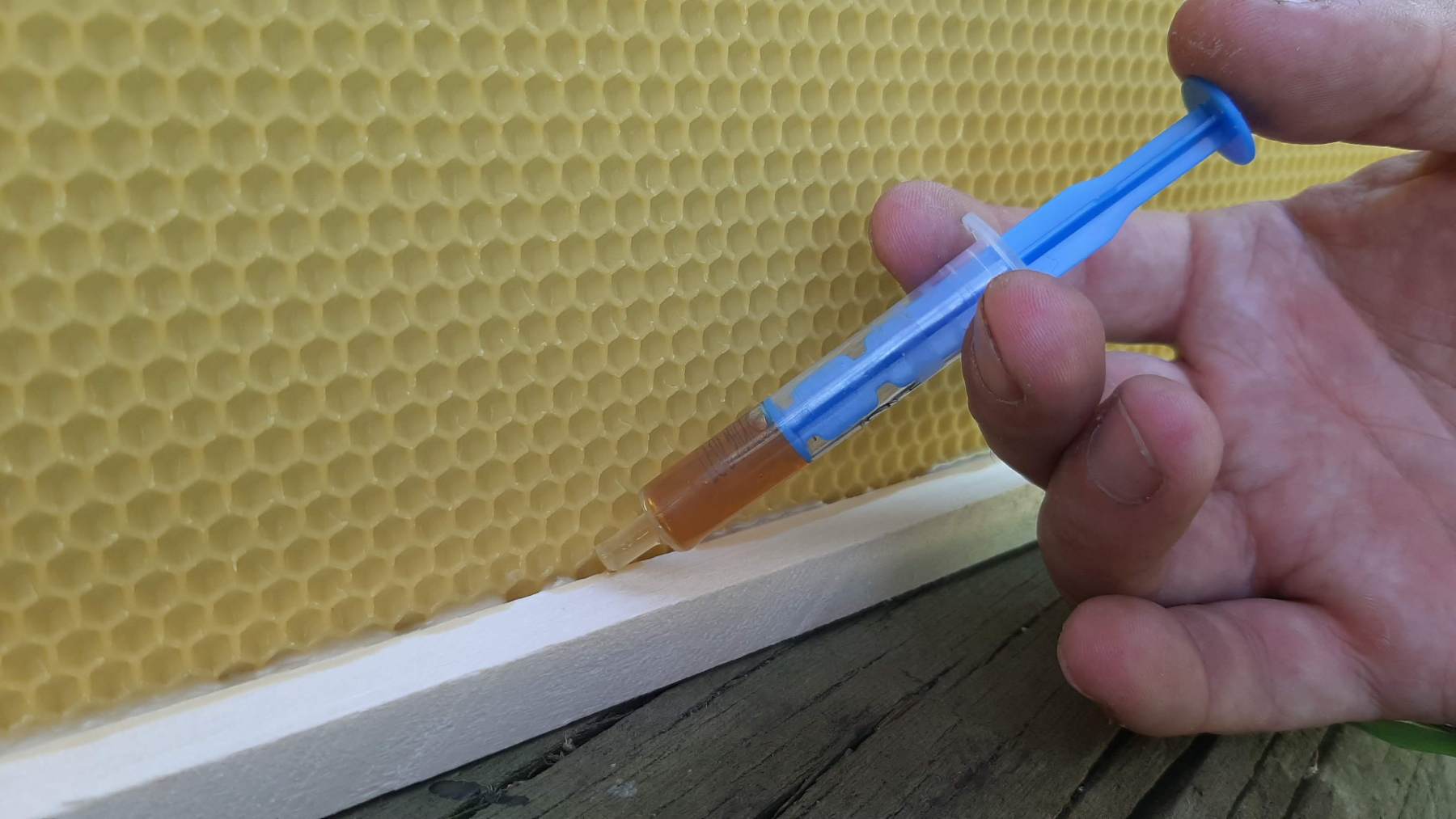 Zatavování mezistěn do rámků za pomoci včelího vosku