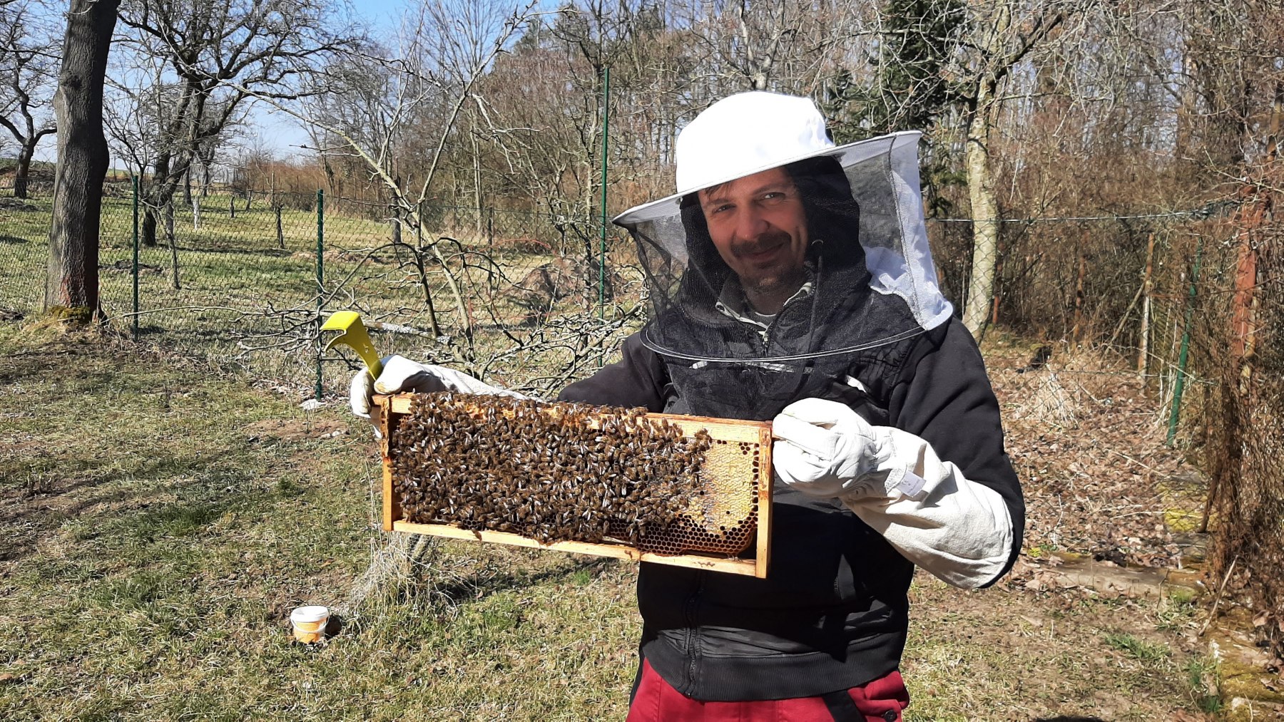 Zatím nás ale tyhle starosti baví, a tak máme v plánu se včelařením vytrvat a pokračovat v něm. A to i přes fakt, že jsme oba silně alergičtí na včelí bodnutí. V letošním roce se chystáme na první vytáčení medu. Příští rok možná zkusíme naše včelstva rozšířit, no, uvidíme. Každopádně nám prosím držte palce a vězte, že o našich pokrocích, úspěších či neúspěších Vás budeme rádi informovat.