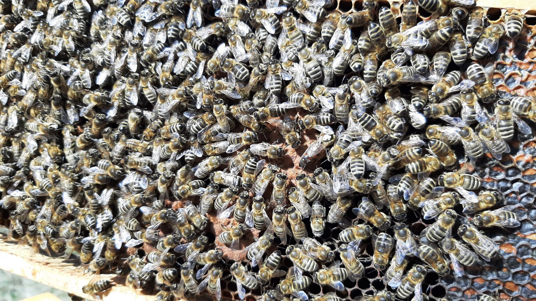 Včelí matka mezi dělnicemiUčíme se od sebe rozeznat zavíčkovaný plod od medu a trubčiny. Zkoumáme, jestli nemáme včelky napadené nějakou chorobou a sledujeme, jak mezi sebou včely komunikují. Při manipulaci se včelkami jsme stále poměrně pomalí a cítíme, že máme obrovský prostor pro zlepšení.