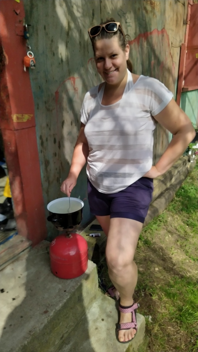 Šárka vaří cukerný roztokDo úlů jsme vložili stropní krmítka a na vařiči uvařili sladký hustý cukerný roztok. Své využití tak našly i 50 let staré cukrové homole, které měla ještě Markova babička ve špajzu. Časem jsme vyrobili i speciální kryt na krmítko. A začali jsme bojovat s dalšími přírodními padouchy. Mravenci. Mršky jedny, jakmile zjistili, že se v horním patře úlu pravidelně nachází sladký cukerný roztok, začali na úly dělat hromadné nájezdy. My s Markem jsme tak museli pravidelně úly odmravencovávat a spolu s dědou jsme vymýšleli strategie, jak mravencům bránit v jejich útocích. Nakonec se nám podařilo mravence od úlů odlákat a obě mladá včelstva jsme zakrmili 20 kg cukru (10 kg každému včelstvu).